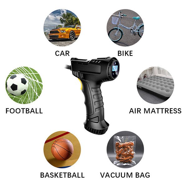 La lampada LED integrata fornisce una luce aggiuntiva in condizioni di scarsa illuminazione. È perfetto per l’uso al buio o in situazioni di emergenza. Basta inserire il cavo del compressore nella presa dell’auto e premere il pulsante giallo per iniziare a riempire le gomme. Quando le gomme sono piene, rilascia il pulsante e il lavoro è fatto.
