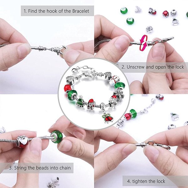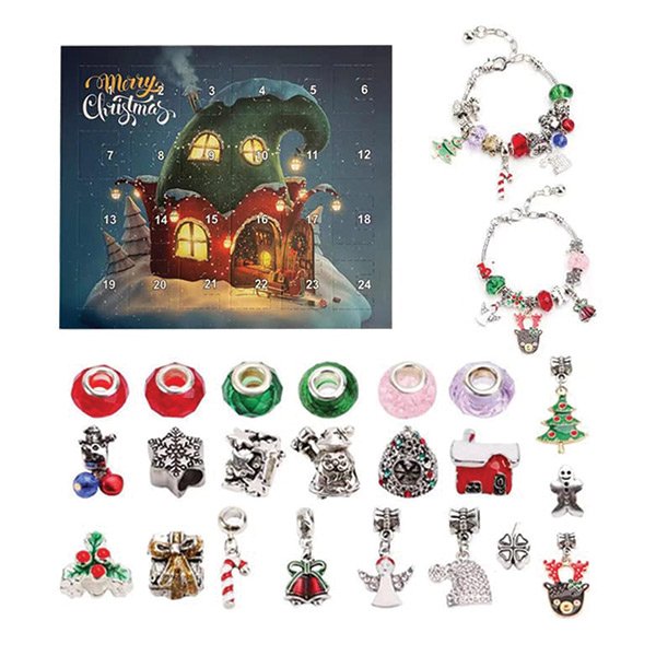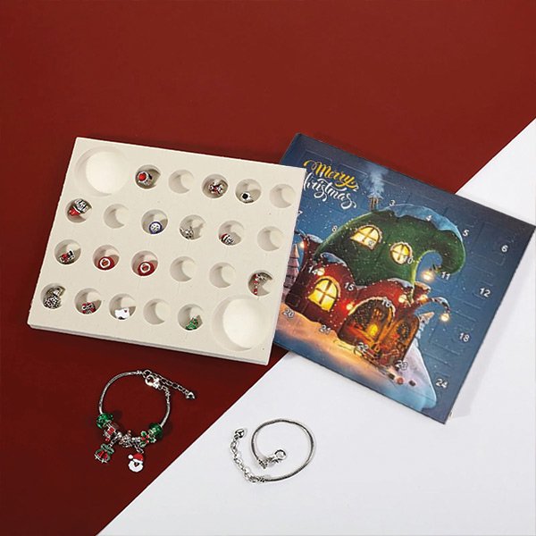 Il calendario dell’avvento contiene 2 braccialetti e 22 ciondoli diversi.