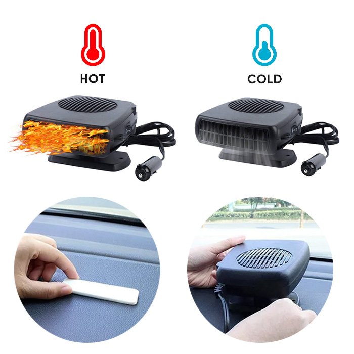 Le dimensioni ridotte e compatte rendono questo riscaldatore per auto molto comodo da usare. È sufficiente collegarlo all’accendisigari dell’auto. Premendo l’interruttore della ventola o del riscaldamento, il riscaldatore entra in funzione. Il vantaggio è che non è necessario attendere il riscaldamento del motore per soffiare aria calda.
