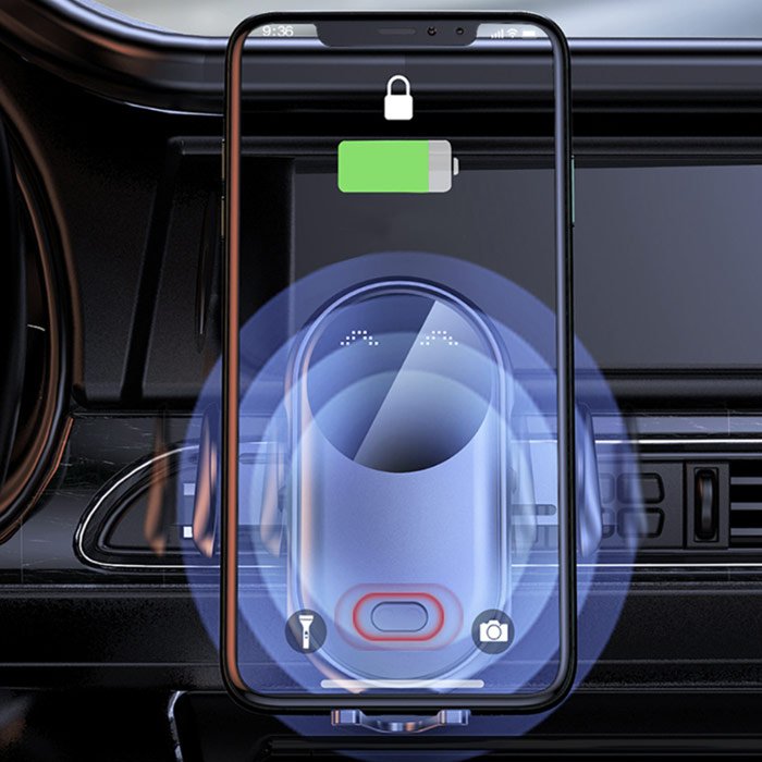 Chargy ha una funzione di bloccaggio automatico. Quando il telefono si avvicina al supporto, questo si aprirà automaticamente e afferrerà delicatamente il telefono, mantenendo il telefono saldamente in un posto sicuro. Toccando il retro del Chargy, tuttavia, si aprirà e potrete facilmente estrarre il telefono dal supporto. Inoltre, permette la ricarica wireless per i telefoni compatibili.
