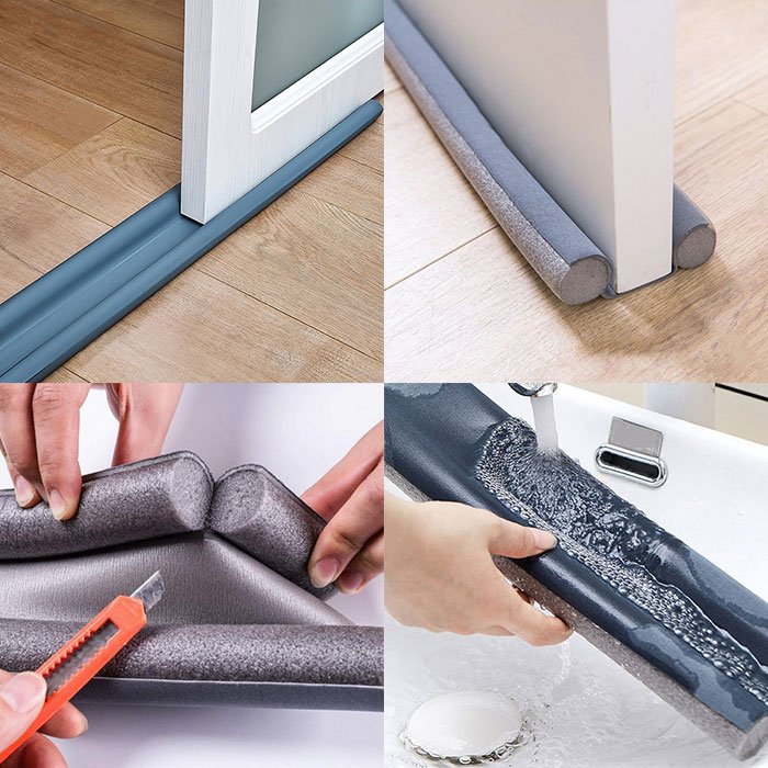 Il sigillo o da porta a doppio lato blocca l’aria calda e fredda e impedisce la formazione di correnti sotto la porta. Perciò, si può mantenere la temperatura dell’aria desiderata nella stanza e risparmiare sulla bolletta.