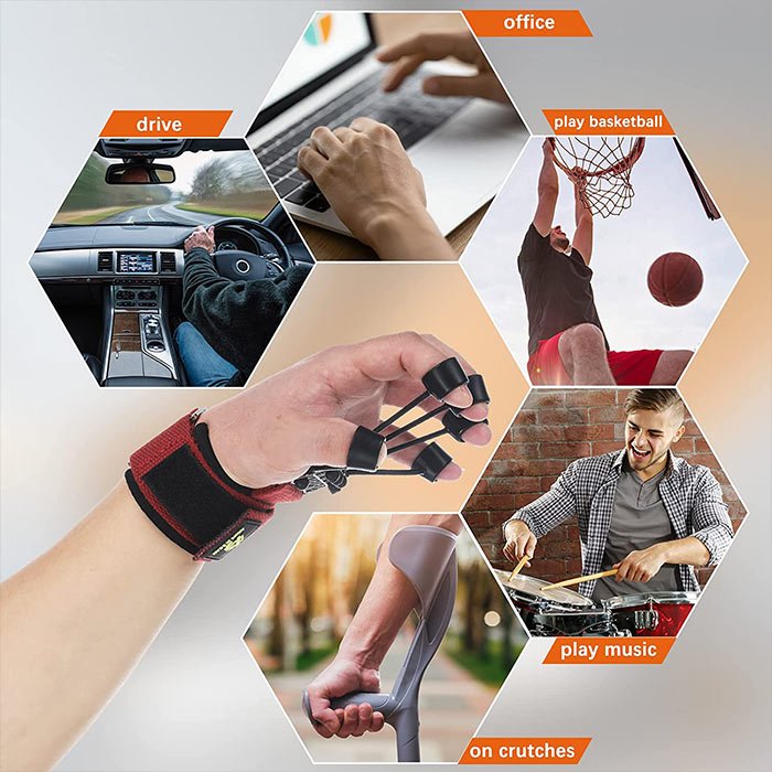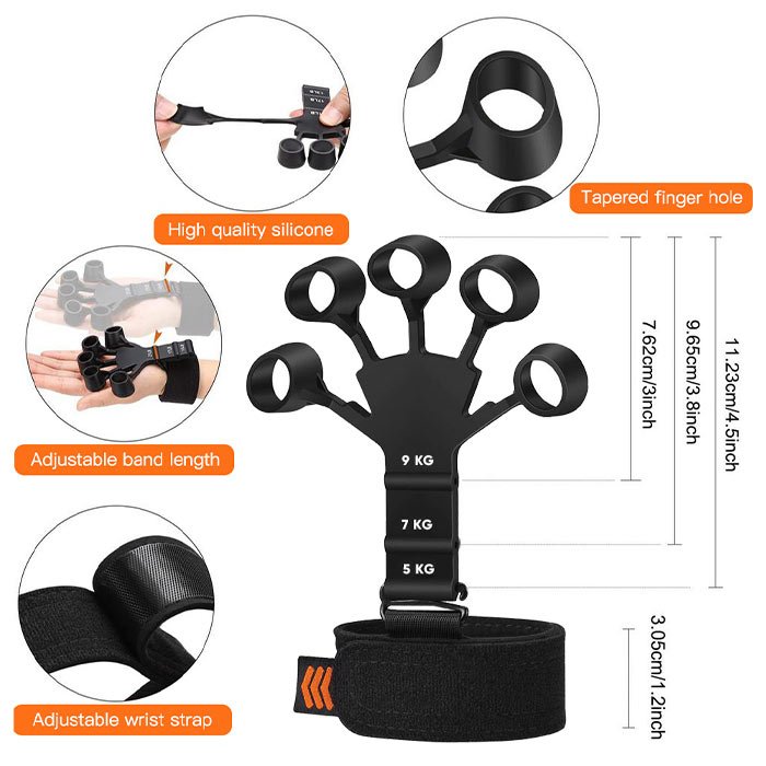 Il design è unico e permette di esercitare ogni dito in modo individuale. Il design è realizzato in gomma di alta qualità, sicura, resistente e non facile da strappare. Consente 3 diverse difficoltà di allungamento delle dita, in modo da essere flessibile per tutti.