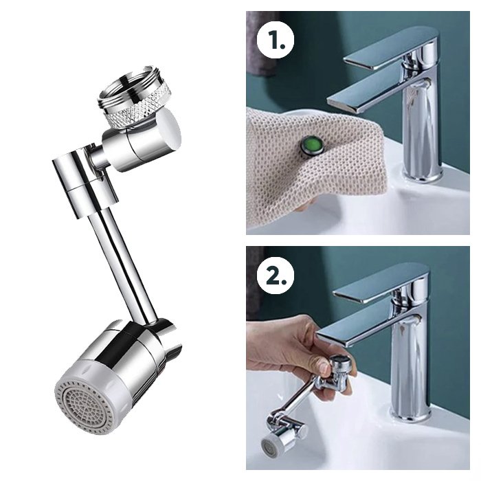 La nostra prolunga per rubinetto a spruzzo ruotabile e pieghevole a 180° è adatta per l’uso nel lavello della cucina, in quanto consente di lavare in modo più flessibile verdure, frutta, piatti o mani e di raggiungere tutti gli angoli del lavello, mentre la maggior parte degli altri rubinetti non può farlo. È molto utile per i bambini, che hanno difficoltà a raggiungere il rubinetto per lavarsi le mani o il viso. Per l’uso nel lavandino del bagno, è possibile lavarsi i capelli e il viso più facilmente. Allo stesso tempo, l’estensione del rubinetto con un ampio angolo di rotazione è più comoda per pulire l’intero lavandino.