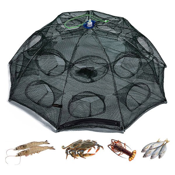 La rete da pesca è fatta di materiali di alta qualità resistenti all’usura e in grado di resistere alle sollecitazioni e alle condizioni avverse che potresti incontrare durante la pesca. È progettata per essere facile da montare, con diversi tunnel che conducono alla trappola principale con esche da tutti i lati che catturano efficacemente pesci e altre creature marine.