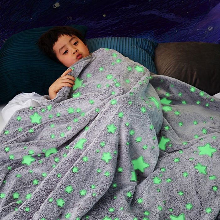 Mantieni il sonno dei tuoi bambini sereno e divertente. La coperta è fatta di materiali morbidi e resistenti, stampata con stelle e lune che brillano al buio ed eliminano la paura del buio del bambino di notte.