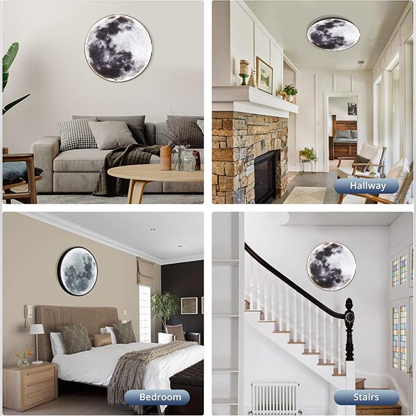 Trasforma il tuo spazio in un sereno cielo notturno con la lampada da parete. Il suo design grande a forma di luna emette una delicata luce celeste che avvolge la tua stanza in tranquillità, rendendola il perfetto complemento per una serata rilassante.