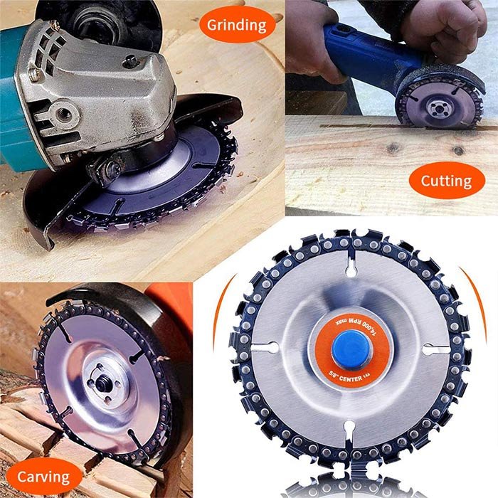 Trasforma la tua smerigliatrice angolare in una sega per tagliare il legno, ottima per rimuovere velocemente il legno, tagliare e modellare in generale. Taglia tutto, dal legno duro, alla plastica e altri materiali morbidi non ferrosi.