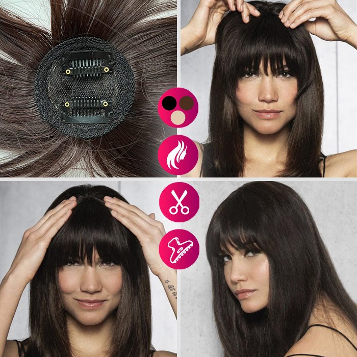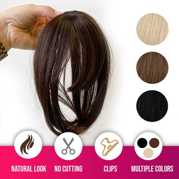 Le extension per capelli sotto forma di frangia non solo aggiungono riflessi ai vostri capelli naturali, ma creano anche un look più giovanile. Se non vi piacciono troppo lunghi o troppo spessi, potete tagliare la frangia a vostro piacimento, dipende solo da voi. In questo modo, il viso e l’acconciatura in generale assumeranno un aspetto ringiovanito e maturo.