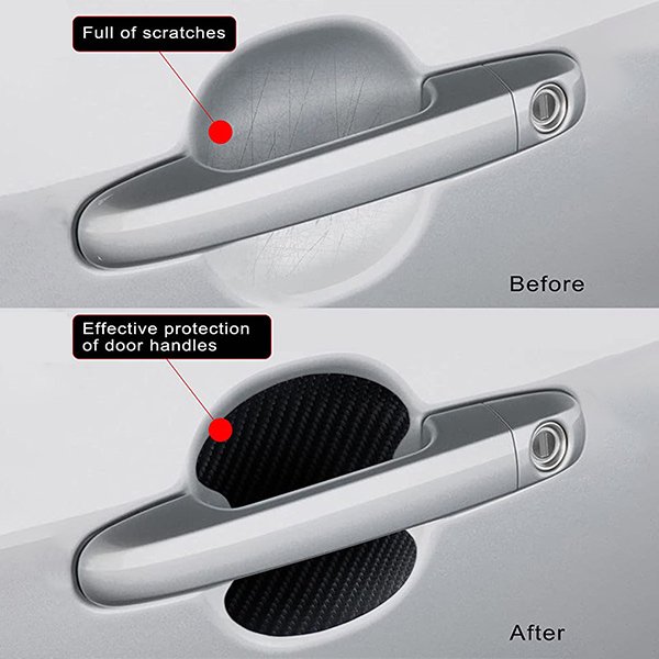Offrono una protezione aggiuntiva alle maniglie, prevenendo graffi, abrasioni e piccoli urti che possono verificarsi durante l’uso quotidiano. Con gli adesivi si preserva lo stato originale delle maniglie del veicolo, che permette al loro aspetto di rimanere come nuovo.