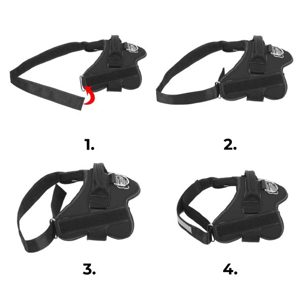 Si può sistemare l’imbracatura sul cane in pochi secondi. La fibbia da un lato è facile da aprire e chiudere, ma serve anche da fibbia di sicurezza.