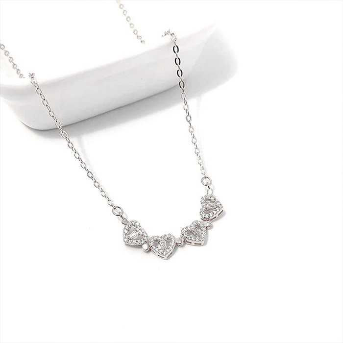 La collana è fatta senza sostanze pericolose come nichel, piombo e altre ed è fatta di materiali che sono compatibili con la tua pelle e comodi da indossare. Hearty ha uno speciale design magnetico che cambia la forma della collana da un quadrifoglio a una serie di cuori.