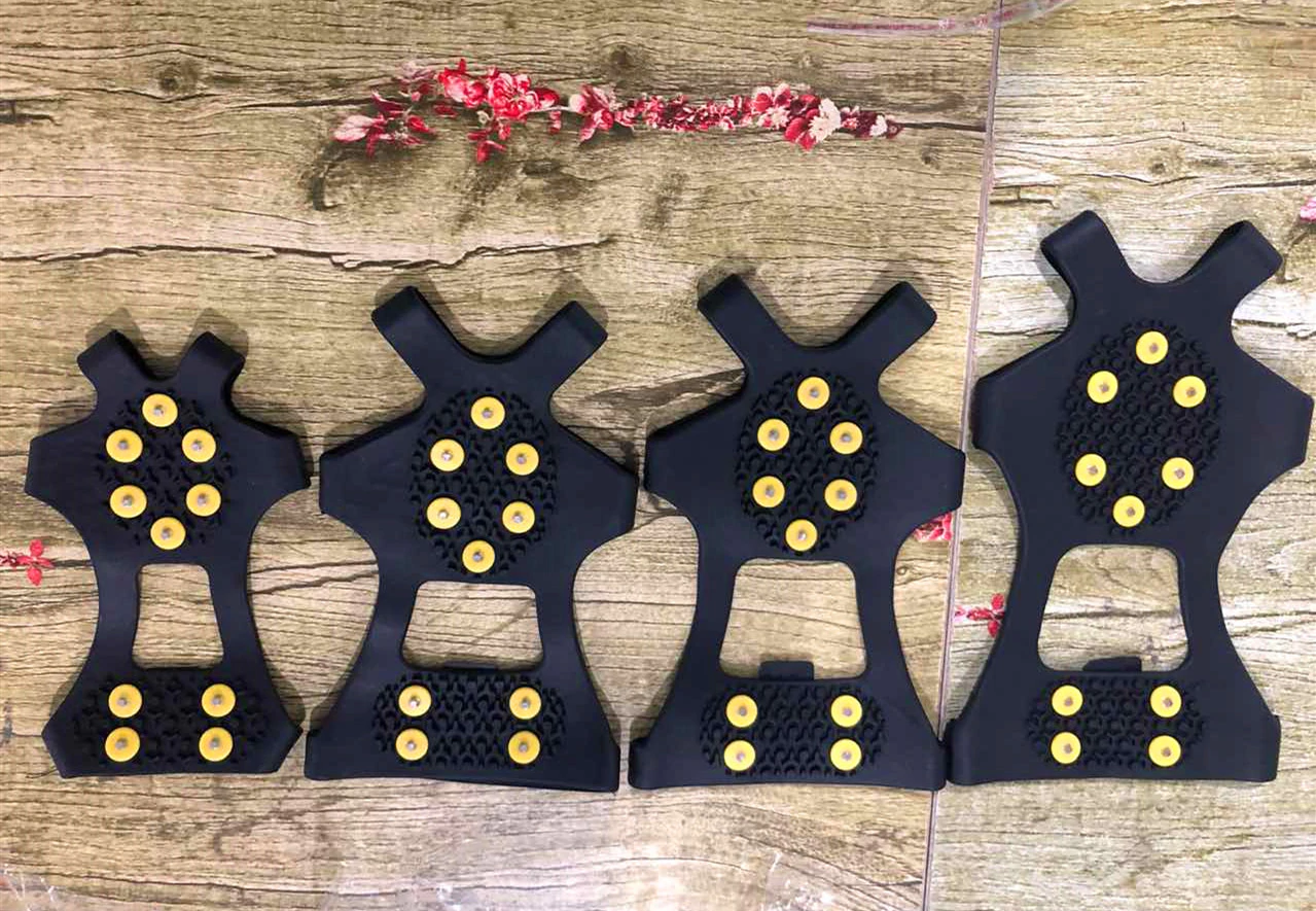 Il materiale delle pinze per il ghiaccio sono fatte di TPE e chiodi antiscivolo. I chiodi utilizzano uno speciale acciaio di trazione e offrono un’eccellente trazione su ghiaccio e neve, facili da montare e smontare con una costruzione leggera si piegano fino ad entrare in tasca.