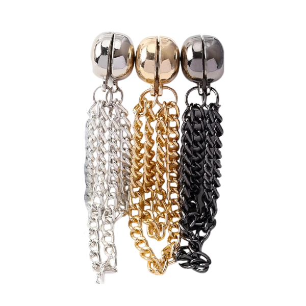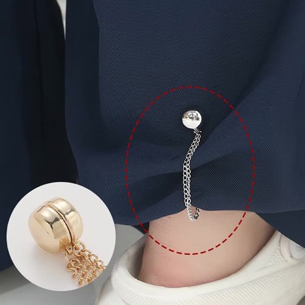Una soluzione semplice ma altamente efficace per maniche larghe e pantaloni troppo lunghi. I magneti tengono saldamente il tessuto al suo posto e mantengono un aspetto pulito e ordinato senza danneggiare i vestiti. Ideale per sistemare rapidamente qualsiasi outfit.