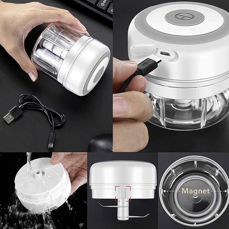 Il nuovo mascherino di aglio elettrico intelligente, testa di posate a cyclone a tre foglie in acciaio inox, può facilmente macinare aglio, pepe, carne, verdure e frutta, e fare rapidamente ingredienti e succhi deliziosi.
