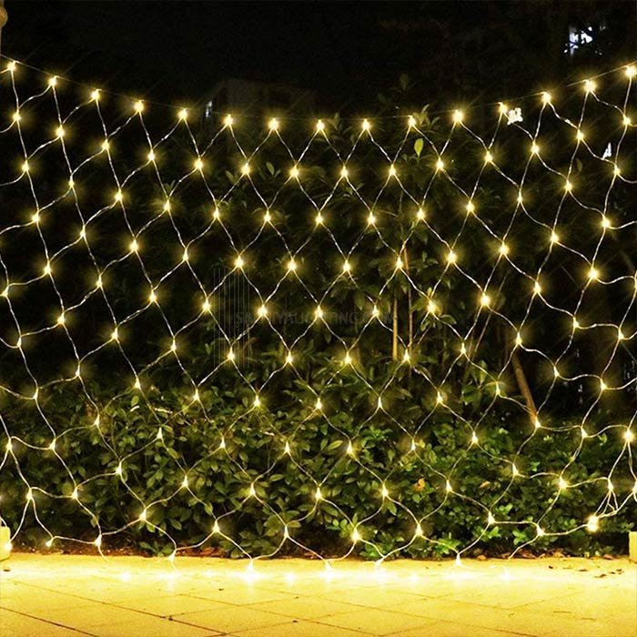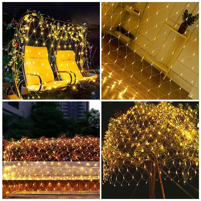 Le luci di rete sono collegate a una spina e al cavo è collegato un controller, con il quale è possibile modificare i livelli di lampeggiamento. Si consiglia di proteggere il controller e la spina dall’ingresso di acqua in caso di pioggia/neve. Sono realizzate in plastica PVC di alta qualità, resistente e flessibile. Queste luci consentono inoltre di collegare insieme fino a tre set di luci.