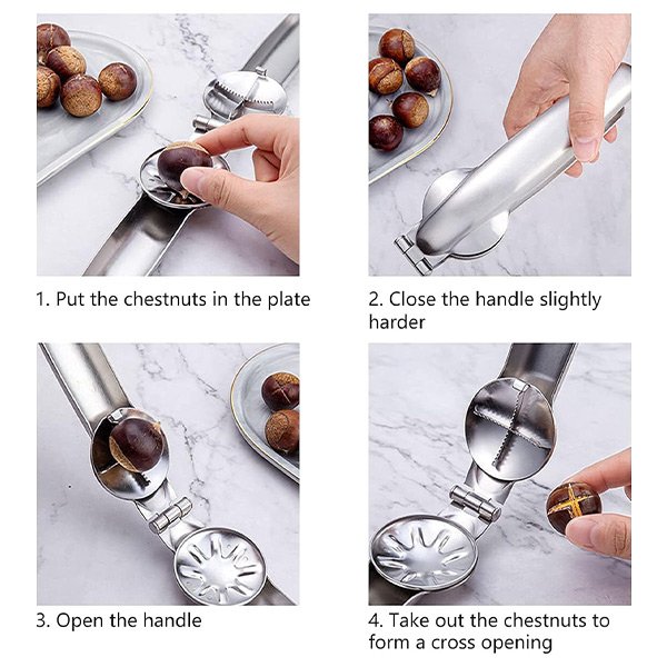 A tutti piace uscire la sera con le caldarroste, ma a nessuno piace preparare e tagliare le castagne prima di arrostirle. Con questo strumento, questo compito diventerà veloce, facile e divertente. Inoltre, è possibile utilizzarlo per aprire le noci, che di solito sono molto fastidiose da aprire.