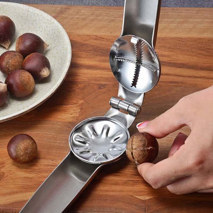 A tutti piace uscire la sera con le caldarroste, ma a nessuno piace preparare e tagliare le castagne prima di arrostirle. Con questo strumento, questo compito diventerà veloce, facile e divertente. Inoltre, è possibile utilizzarlo per aprire le noci, che di solito sono molto fastidiose da aprire.