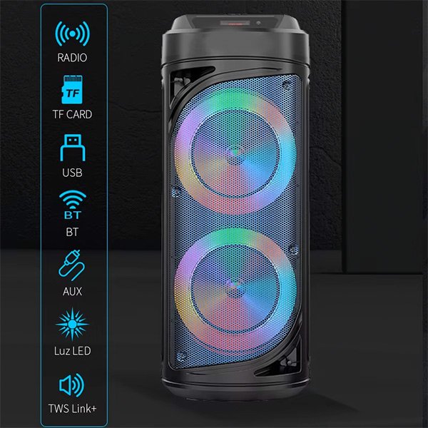 Porta la festa ovunque con il design compatto e leggero del nostro altoparlante Bluetooth. Perfetto per raduni all’aperto, feste in spiaggia o picnic al parco.