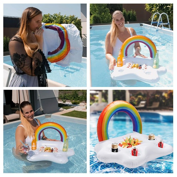 È composto da bellissime nuvole e un arcobaleno, che è un complimento aggiuntivo a qualsiasi piscina o alle vostre foto che farete accanto ad essa.