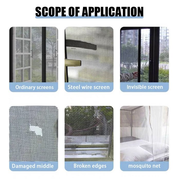 Ideale per uso interno ed esterno, ideale per nascondere istantaneamente i fori. Il nostro kit di riparazione è adatto anche per ambienti ad alta umidità; ripara fori e strappi in reti per finestre, reti per tende, piscine, paraventi per camper e altro ancora.