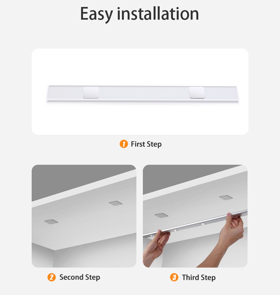 La lampada a LED con sensore è adatta all’installazione in qualsiasi stanza. Potete installarla sotto i mobili della cucina e sarà sempre brillante mentre lavorate. È un’ottima lampada per armadi, cabine armadio, camere da letto, stanze dei bambini, bagni, corridoi, ripostigli, garage e molto altro ancora.