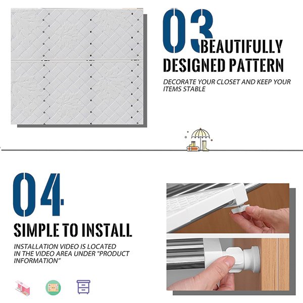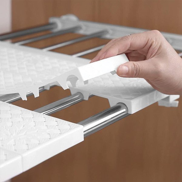 Dì addio agli armadi disordinati con la robusta e resistente costruzione di Shelfy. Può sostenere fino a 20 libbre di peso, mantenendo i tuoi oggetti organizzati e facilmente accessibili.