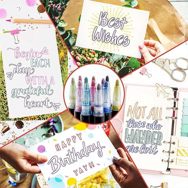 I pennarelli sono perfetti per creare lettere colorate per aggiungere divertimento alla scrittura e al disegno. Quando si scrive, disegnano una linea argentata con un bordo di diversi colori. Sono adatti per tutti i tipi di progetti fai-da-te, per biglietti d’auguri, graffiti, creazione di poster, disegni e decorazione di diari e album fotografici. La scelta del colore argento lucido consente di creare disegni e caratteri unici in pochissimo tempo.