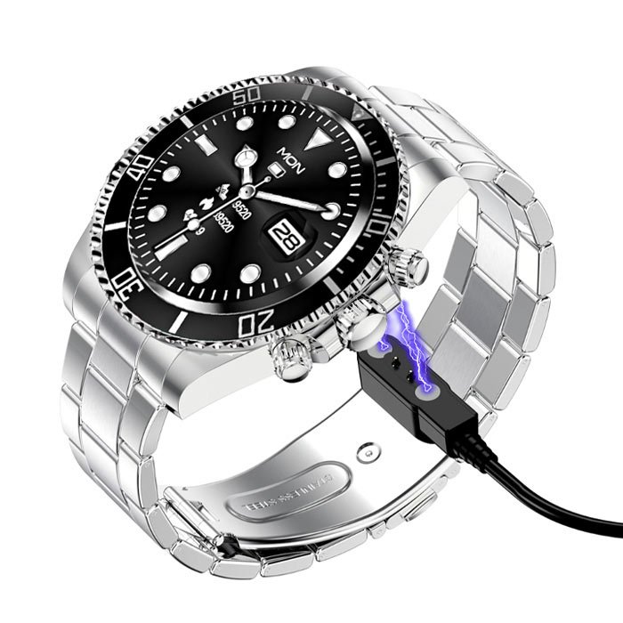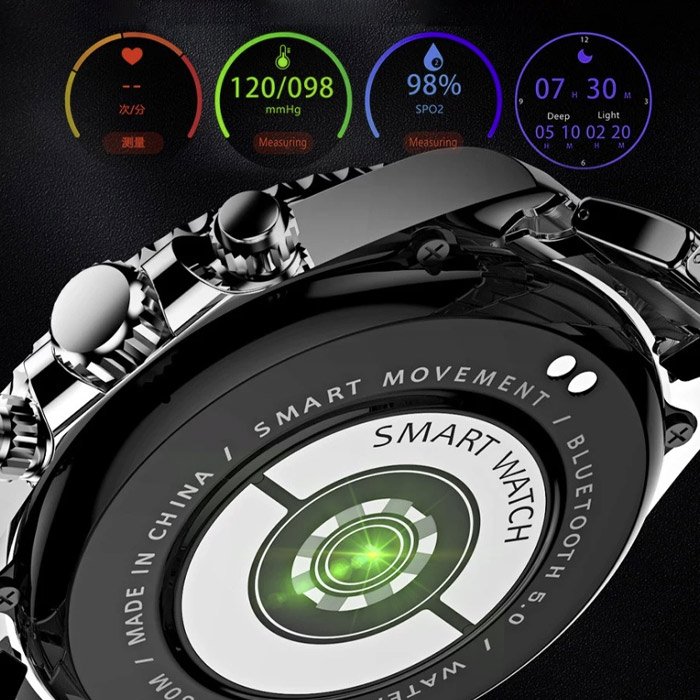 Lo smartwatch è realizzato in acciaio inossidabile e offre un display chiaro, ad alta risoluzione e sensibile, mentre la fascia in acciaio inossidabile è comoda da indossare. È possibile personalizzare la lunghezza del cinturino per adattarlo a qualsiasi polso. La batteria è potente e garantisce una lunga durata dell’orologio. Supporta gli smartphone con iOS 10.0 o superiore e Android 7.0 o superiore.