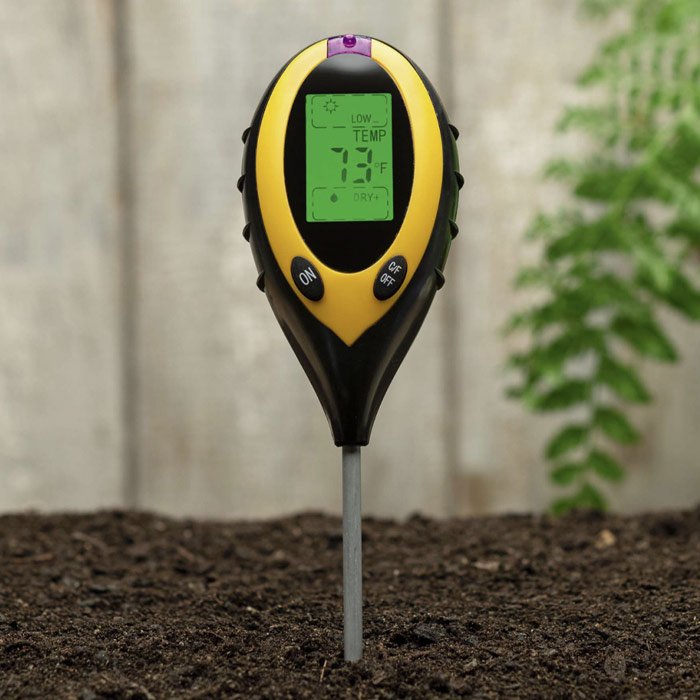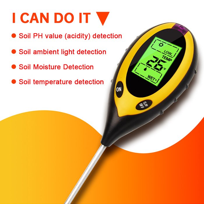 Vi presentiamo il nostro misuratore di terreno 4 in 1. Le sue funzioni sono molto varie: può misurare l’umidità del suolo, la temperatura, il pH del suolo e l’intensità della luce solare. È lo strumento migliore per monitorare la salute e la crescita delle piante.