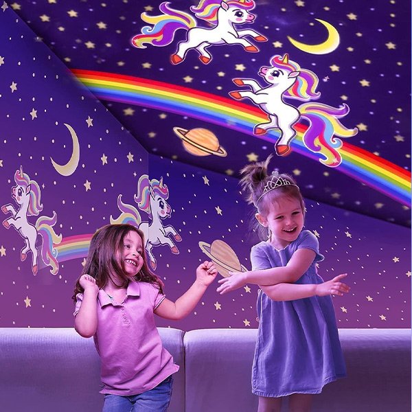 6 film per proiettore: Stelle e Luna, Cielo Stellato, Buon Compleanno, Cervo, Oceano, Fuochi d’Artificio