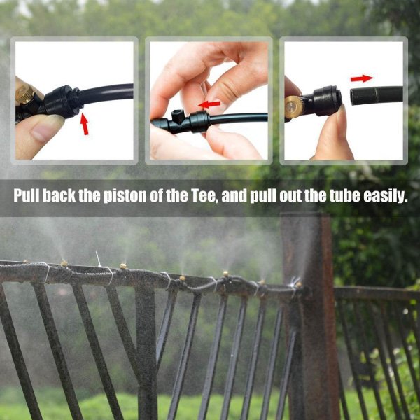 Questo sistema di nebulizzazione per patio può essere assemblato e operativo nel tuo cortile in pochi minuti. Si attacca a qualsiasi rubinetto da esterno standard (3/4 pollice). Nessun utensile speciale richiesto.