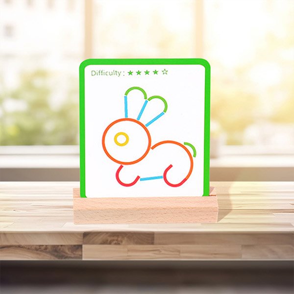 Il nostro puzzle creativo con bastoncini e anelli di legno è progettato per mettere alla prova la tua creatività e le tue capacità di risoluzione dei problemi.