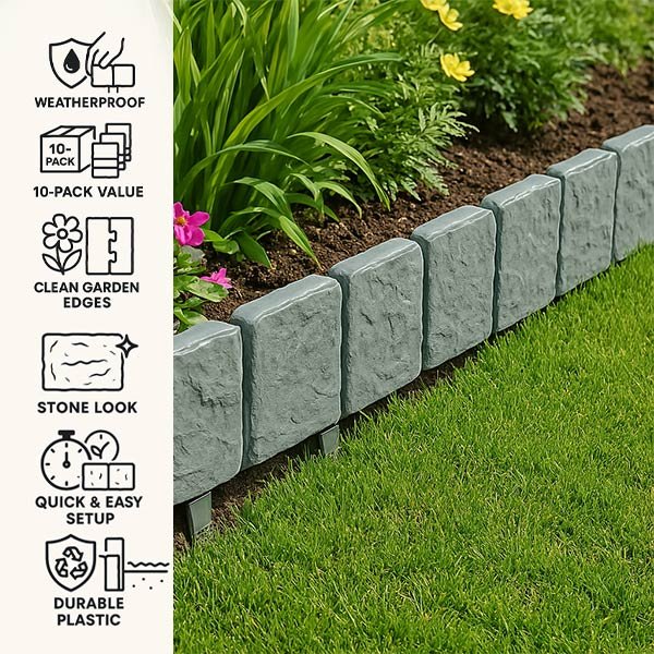 Recinzione da giardino con pietra sintetica (10 pezzi) – Stonefency