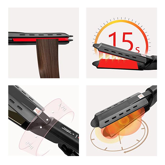Ottieni una finitura professionale da salone direttamente a casa tua. Le piastre in ceramica scivolano senza sforzo tra i tuoi capelli, riducendo l’effetto crespo e migliorando la lucentezza. Goditi capelli lisci e dritti che sembrano appena usciti dal salone, aumentando la tua fiducia ogni giorno.