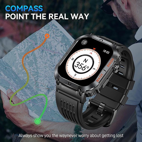 Unendo robustezza con tecnologia avanzata, questo smartwatch di grado militare offre un design tattico perfetto per gli uomini in ogni momento.