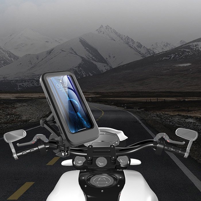 Il supporto del telefono è realizzato in silicone impermeabile e il design è completamente chiuso, in modo da proteggere il telefono dalle giornate di pioggia durante la guida. Non dovrete preoccuparvi che pioggia e neve danneggino il vostro cellulare. Il supporto del telefono è inoltre dotato di un ingresso riservato molto comodo per il collegamento di cuffie o di un cavo di ricarica, coperto da un cappuccio impermeabile.