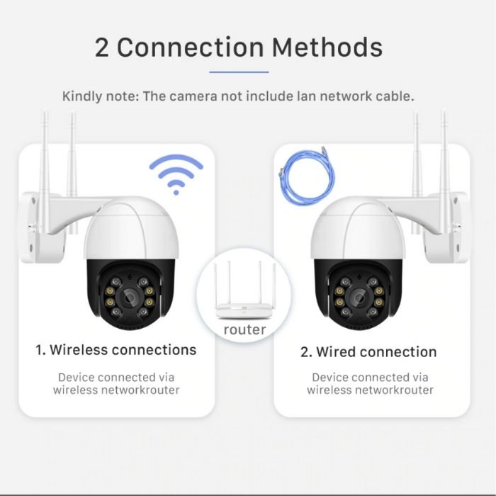 Wificamera ha un sistema integrato che rileva automaticamente i pericoli. Il sistema intelligente non rileva piccoli animali, eventi atmosferici o altre attività di disturbo, quindi i falsi allarmi sono ridotti del 95%, e rileva le persone in modo efficiente e rapido e le contrassegna come pericolose. Il tracciamento automatico monitora anche i movimenti delle persone e ti avvisa. Ci si connette via wifi o cavo di casa e l’ultima tecnologia P2P permette di guardare lo streaming in diretta dalla telecamera.